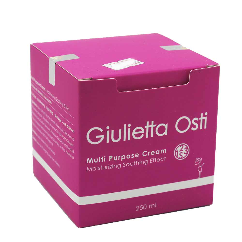 کرم مغذی ویتامینه دست و صورت جولیتا اُستی با فرمولی منحصربفرد با ترکیبی از ( روغن بادام – نرم کننده، مرطوب کننده و سرشار از آنتی اکسیدان، روغن آووکادو – نرم کننده و محافظ پوست، آلانتوئین – کمک به بازسازی کننده سلول های پوست و ضد التهاب، کلاژن ، پروتئین ابریشم- کاهش دهنده چین و چروک، ویتامین E- حاوی آنتی اکسیدان ها و کاهنده عوامل مخرب،پرو ویتامین B5 – نرم کننده و لطیف کننده پوست، شی باتر – مغذی و نرم کننده) می باشد. این محصول منحصر به فرد از برند جولیتا اُستی حاوی ویتامین ها و مواد مغذی منحصر به فرد مناسب انواع پوست میباشد. کرم دست و صورت جولیتا اُستی به واسطه وجود کلاژن هیدرولیز شده، اوره، روغن بادم و گلیسیرین، ضمن رطوبت رسانی، نرمی و لطافت فوق العاده ای که به پوست میبخشد موجب جوانی پوست و به تاخیر افتادن روند پیری آن خواهد شد. وجود شی باتر، ویتامین ها و ویتامین B5 در فرمولاسیون این محصول قدرت پوشانندگی و ماندگاری فراورده را بالا برده و باعث حفاظت پوست در مقابل رادیکال های آزاد و عوامل محیطی خواهد شد. با استفاده مداوم از این کرم چند منظوره شادابی و سلامت را به پوست شما باز می گردد، در فرمولاسیون کرم چند منظوره جولیتا اُستی از مواردی که می تواند برای پوست و سلامت شما مضر باشد مانند پارابن، پترولاتوم و اتانول استفاده نگردیده است